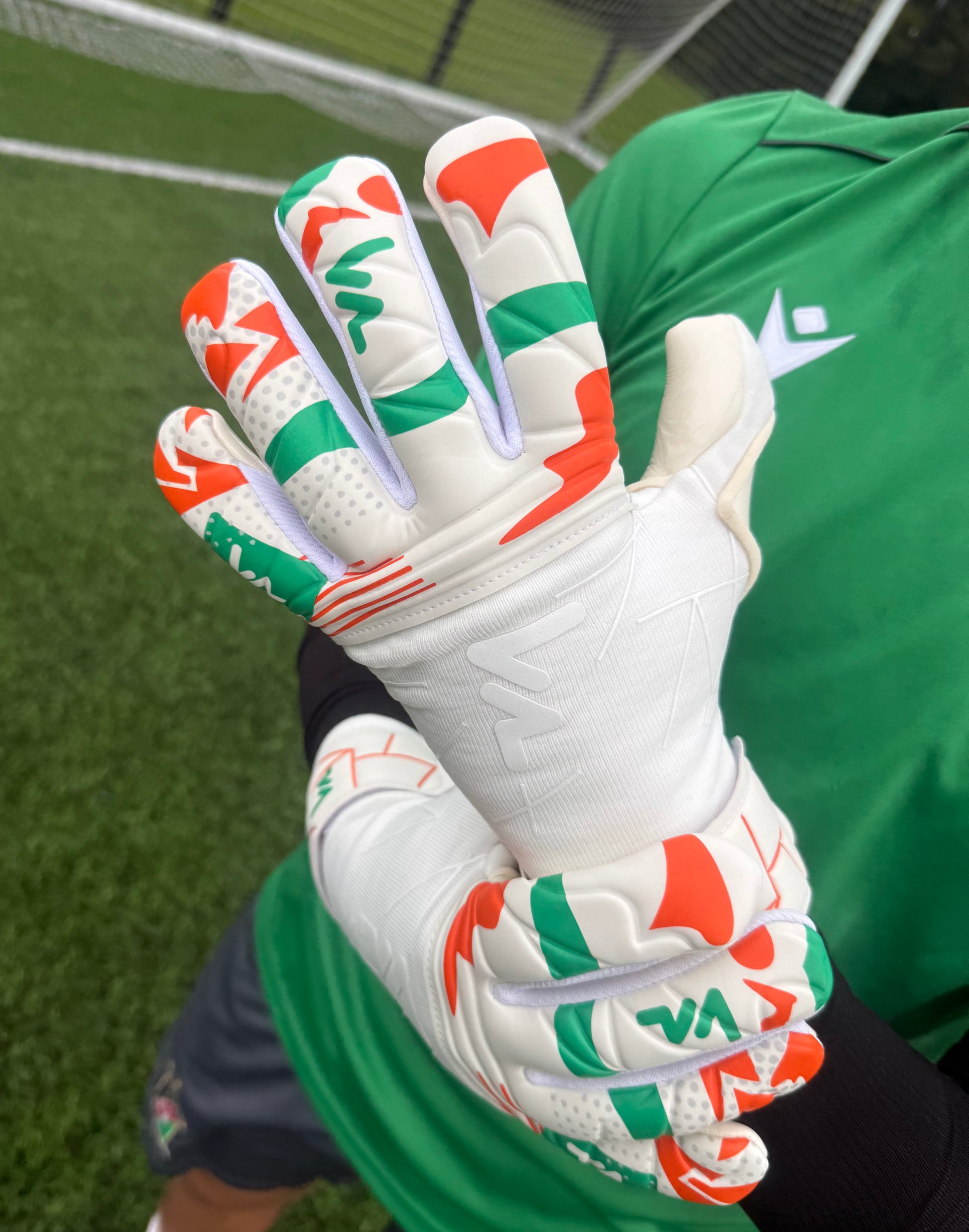 The FrixionGK Duo Elite glove with our spectacular new backhand design, with its lightweight knitted backhand material and latex punch zone,snug fit and excellent grip in all weather conditions. We have also added the addition of a latex strap.