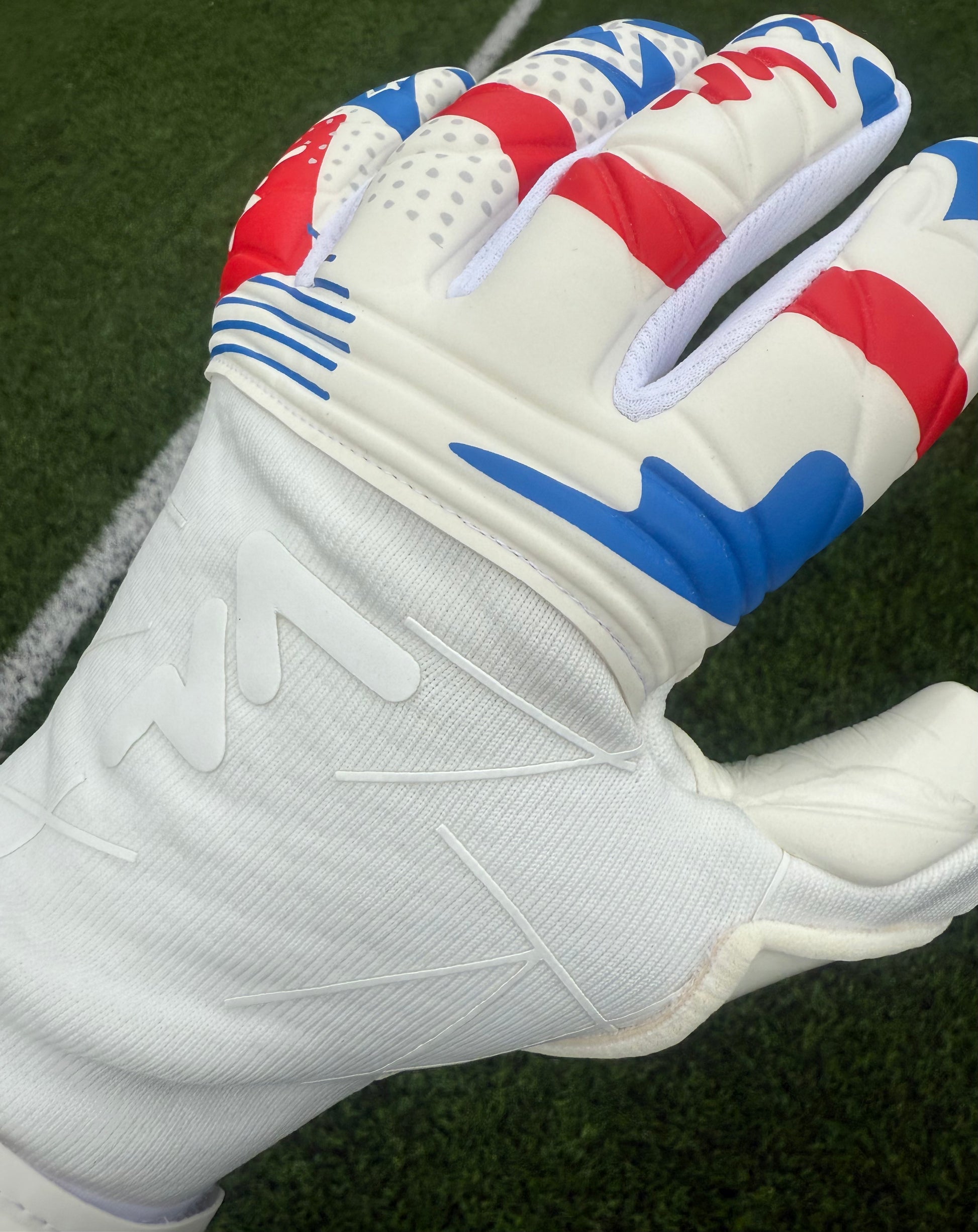 The FrixionGK Duo Elite glove with our spectacular new backhand design, with its lightweight knitted backhand material and latex punch zone,snug fit and excellent grip in all weather conditions. We have also added the addition of a latex strap.
