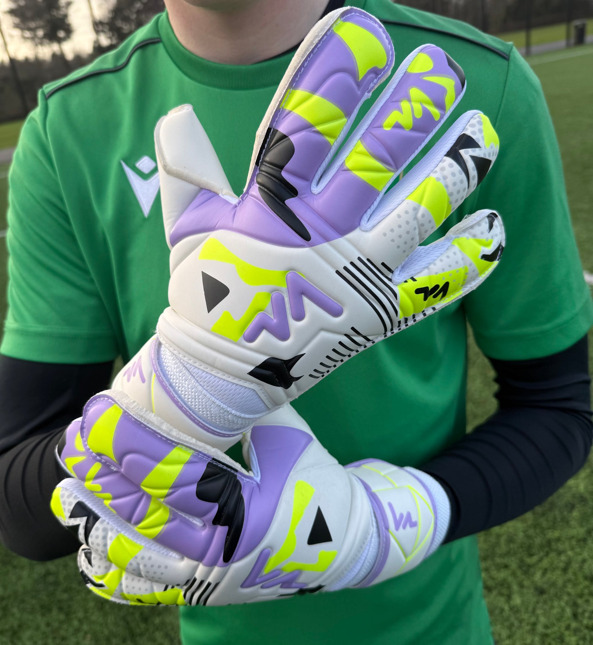 This FrixionGK Elite Latex glove features a Contact Latex palm with a hybrid cut that provides professional level performance. The glove's latex backhand is designed to maximize air flow and breathability on the pitch for optimal performance and comfort. The glove is also equipped with a latex single strap for a snug tight fit.